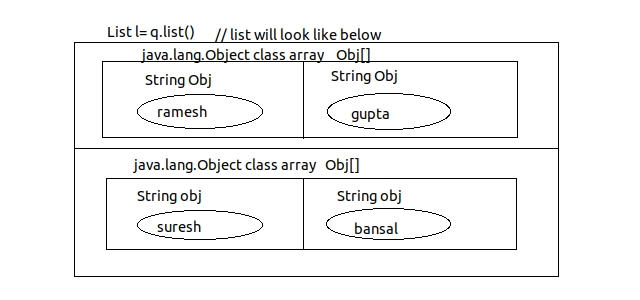 - if HQL select query retrives specific column values of db table (partially loaded objects), then the generated list datastructure contains java.lang.Object class array as element values.
